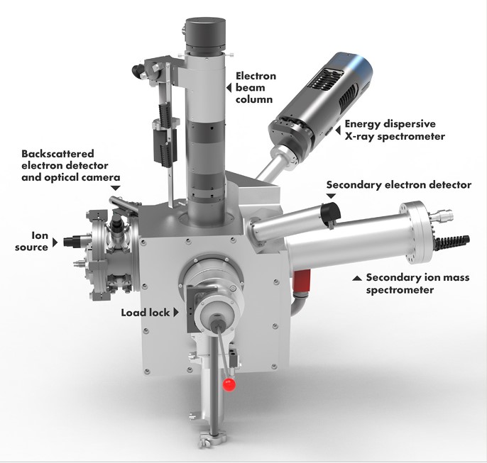ChipMill включает ионный источник для травления образца, оптическую камеру для мониторинга хода процесса, а также колонну сканирующего электронного микроскопа (SEM), работающую совместно с детектором вторичных электронов (SED) и детектором обратнорассеянных электронов (BSE) для формирования изображений образца.