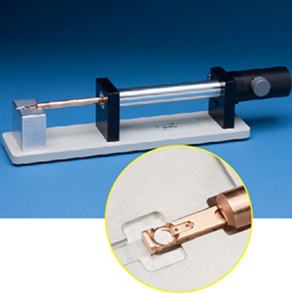 Пружинный зажим надежно фиксирует образец или сетку и легко задействуется с помощью прилагаемого инструмента для зажима.